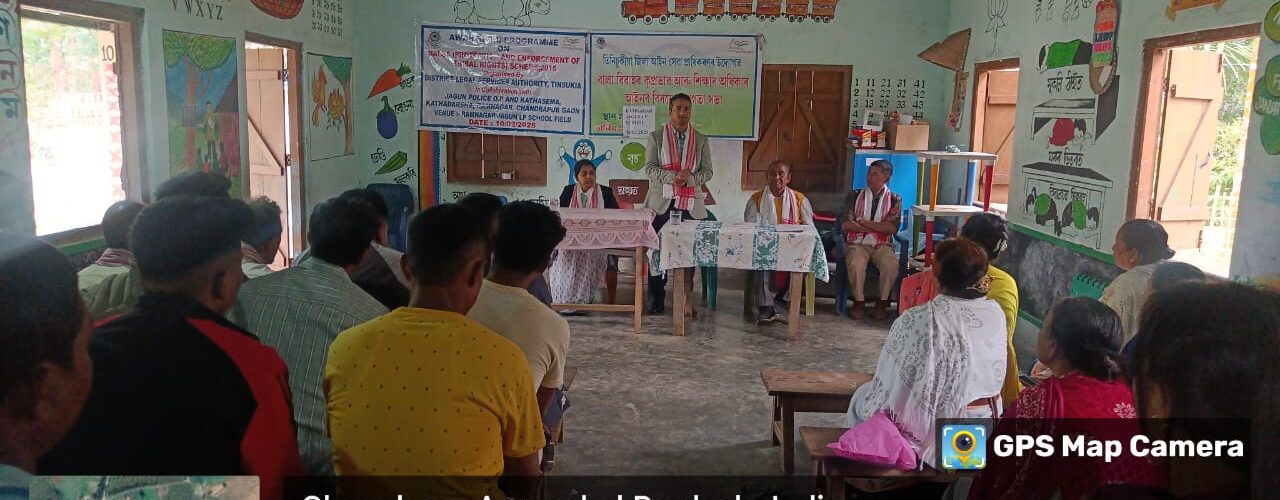 Awareness Programme on NALSA(Protection and Enforcement of Tribal Rights)Scheme,2015 and Awareness Programme on Evils of Child Marriage organized by District Legal Services Authority, Tinsukia in collaboration with Jagun Police O.P and Kathasema, Kath adarsha, Ramnagar, Chamdrapur Gaon