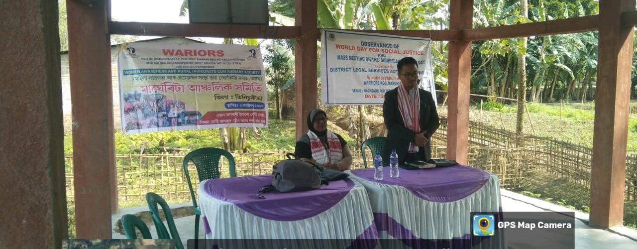 OBSERVANCE OF WORLD DAY FOR SOCIAL JUSTICE ORGANIZED BY DISTRTICVT LEGAL SERVICES AUTHORITY, TINSUKIA IN COLABORATION WITH WARRIORS NGO, MARGHERITA