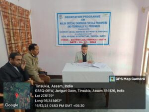 ORIENTATION PROGRAMME ON NALSA SPECIAL CAMPAIGN FOR OLP PRISONERS AND TERMINALLY ILL PRISONERS IN COLLABORATION WITH LEGAL AID CLINIC OF DISTRICT JAIL, TINSUKIA VENUE-DISTRICT JAIL, TINSUKIA DATE-16/12/2024